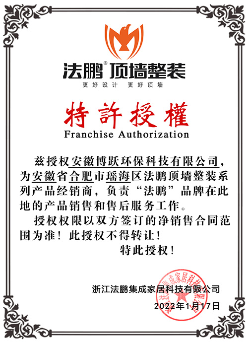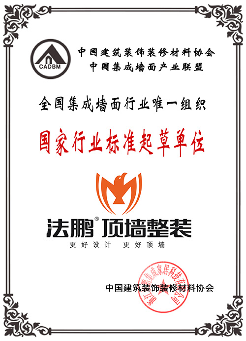 公司旗下品牌——【法鵬】專注于竹木纖維頂墻集成品牌的打造,憑借公司過硬的產(chǎn)品質(zhì)量,豐富的款式類型,以及貼心到位的服務(wù)體系,已成為竹木纖維集成墻面行業(yè)的佼佼者,享有較高的美譽度。公司作為【無鉛墻面聯(lián)盟】的發(fā)起單位,始終致力于推廣健康墻面,為萬千家庭打造綠色環(huán)保的家居環(huán)境為使命,推出的高于行業(yè)標準的【5A標化墻面】幾乎成為了消費者選擇集成墻面新標準。