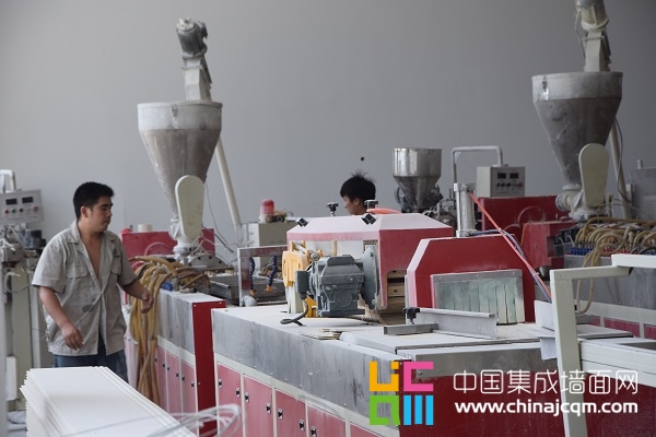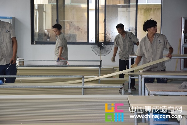 在三一陽光營(yíng)銷總監(jiān)萇總的陪同下,我們首先來到了生產(chǎn)車間,映入眼簾的是車間整齊劃一層層堆疊的板材與竹木纖維集成墻面的原材料。在萇總的引導(dǎo)下,我們看到車間多條正在生產(chǎn)的大規(guī)模擠出線,操作工人們正在不停忙碌奔波。