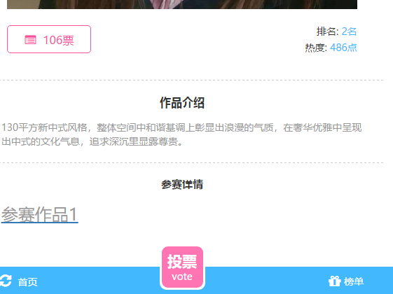 3、可以點擊下方“投票”按鍵,為您心怡的設(shè)計師與設(shè)計作品投上寶貴的一票,PICK你最愛的設(shè)計作品。