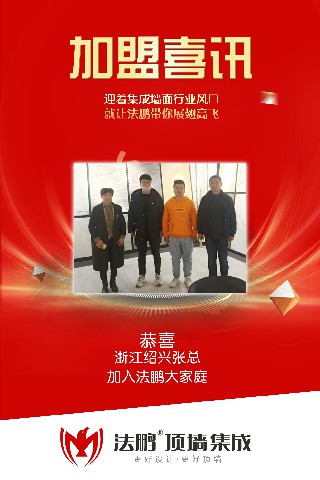 法鵬頂墻集成迎來(lái)鼠年開(kāi)門(mén)紅,在特殊時(shí)期敢為人先,繼續(xù)招商,浙江紹興張總成功加入法鵬大家庭,以下是他的創(chuàng)業(yè)夢(mèng)想時(shí)刻!