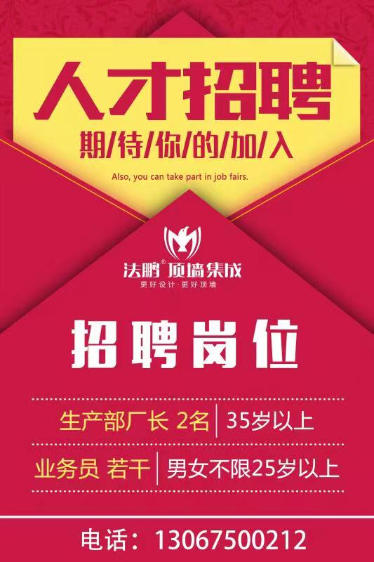 法鵬頂墻集成廣招人才,詳情請(qǐng)看下圖。