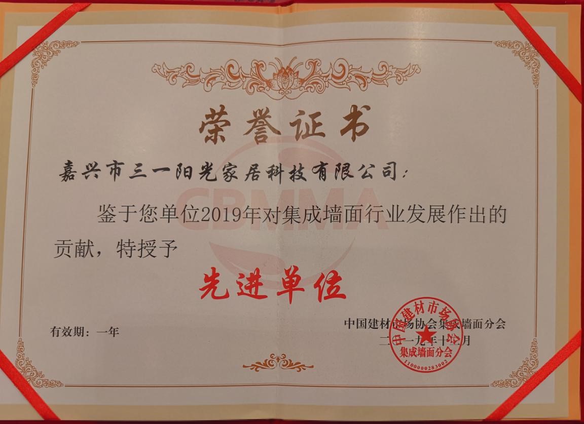 事件三:榮獲集成墻面行業(yè)“先進單位”稱號