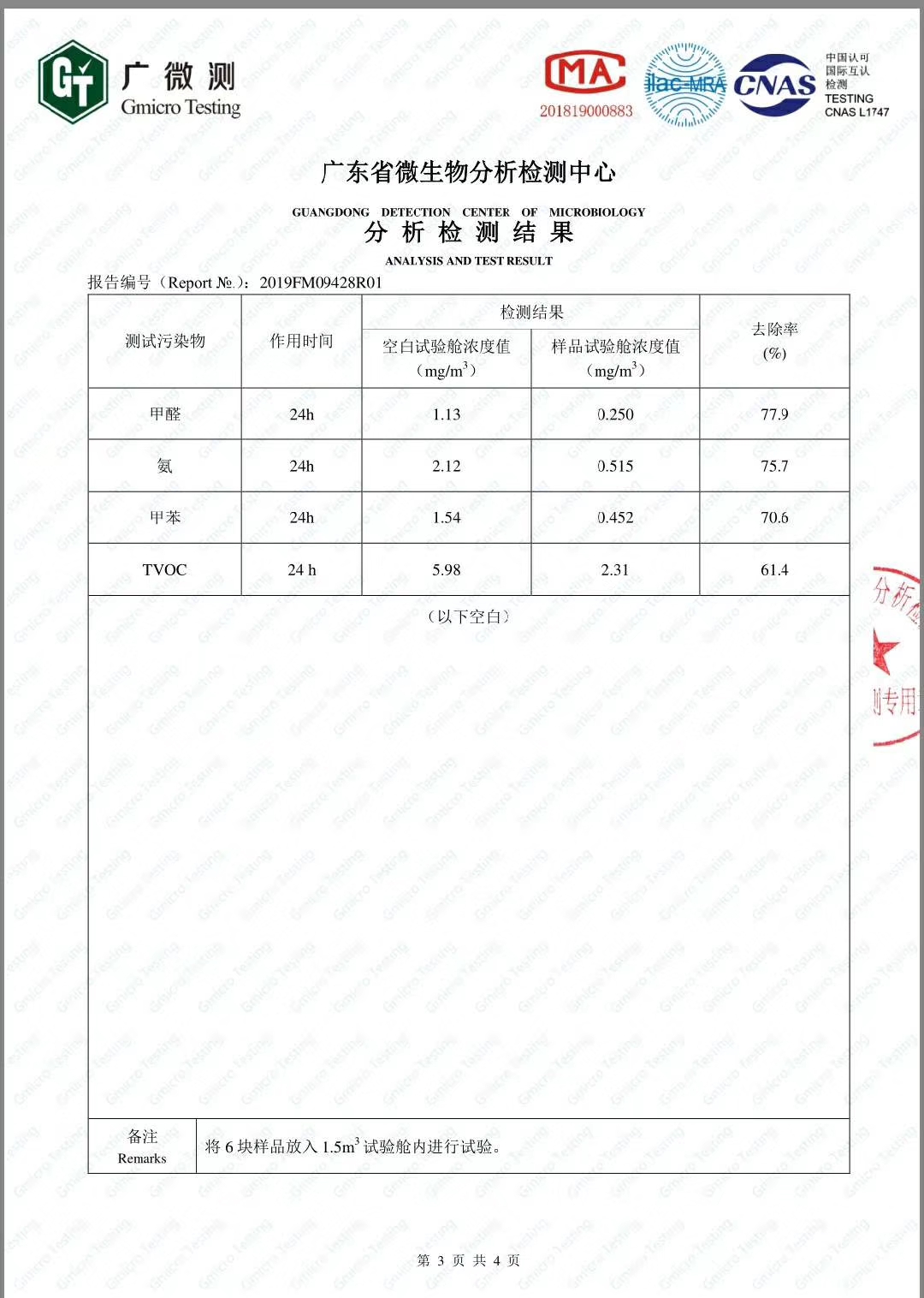 法鵬1號(hào)甲醛祛除率為77.9%,甲苯祛除率為75.7%,專業(yè)權(quán)威機(jī)構(gòu)檢測,專利產(chǎn)品,值得信賴。