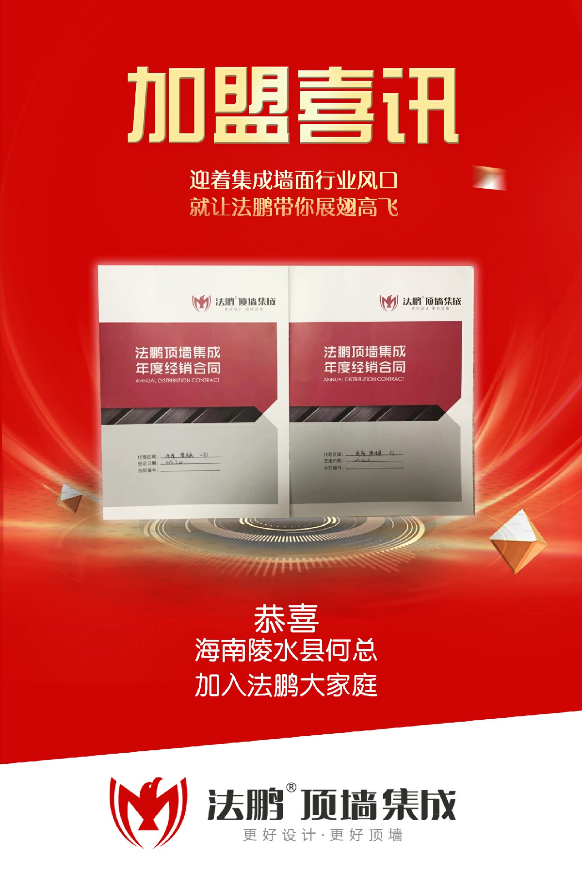 法鵬頂墻集成高歌猛進(jìn),簽約海南陵水縣何總。