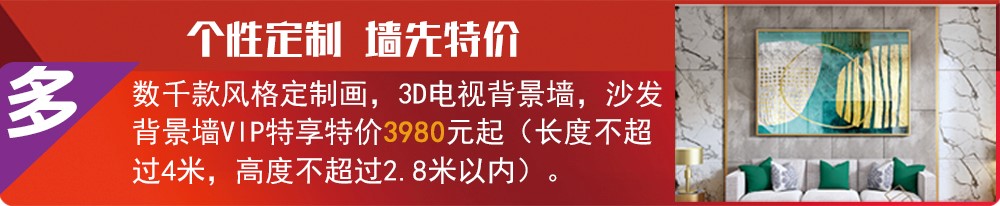 數(shù)千款風(fēng)格定制畫(huà),3D、5D電視背景墻,沙發(fā)背景墻VIP特享特價(jià)3980元起,更好的品質(zhì),更美觀的設(shè)計(jì),更低的價(jià)格,盡在這個(gè)五一!
