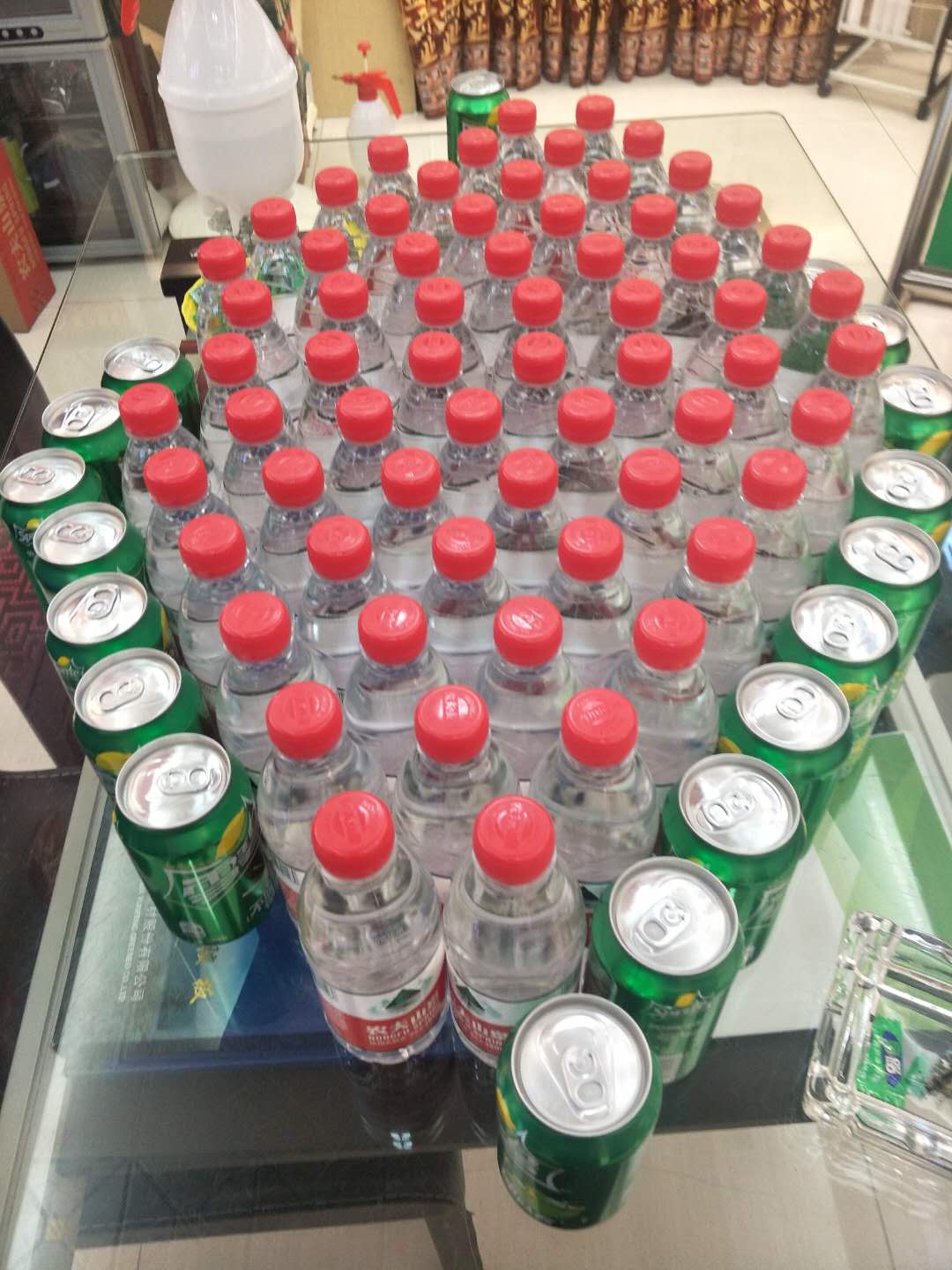 一大堆礦泉水和飲料