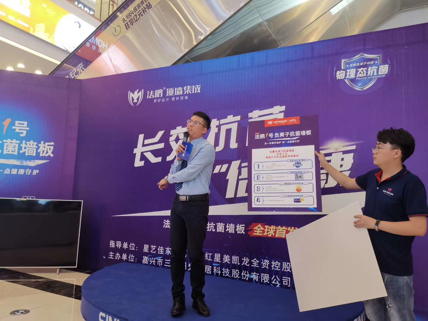 法鵬頂墻集成最近推出了全新一代旗艦產(chǎn)品——負(fù)離子集成墻面,該產(chǎn)品一經(jīng)推出就受到了消費(fèi)者及集成墻面行業(yè)的極高關(guān)注度。近日,法鵬頂墻集成在貴陽市召開了法鵬頂墻集成負(fù)離子抗菌墻板新品上市及西南區(qū)交流大會(huì),現(xiàn)場(chǎng)首發(fā)了“法鵬1號(hào)”負(fù)離子抗菌集成墻面,并為法鵬頂墻集成貴陽專賣店的開業(yè)進(jìn)行了剪彩。