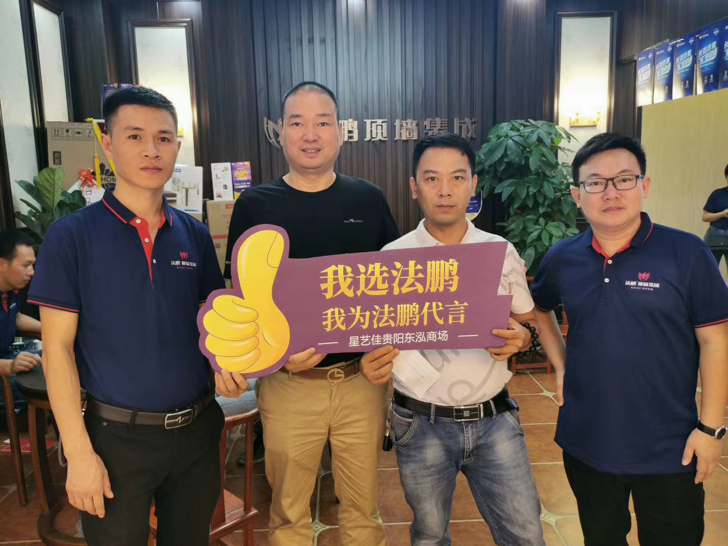 星藝佳貴陽東泓商場(chǎng)。商場(chǎng)領(lǐng)導(dǎo)也到場(chǎng)祝賀法鵬頂墻集成貴陽店順利開業(yè)。