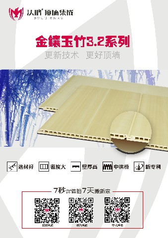 一、選材好 本品選用出產(chǎn)于江浙一帶的名貴竹品——金鑲玉竹纖維。金鑲玉竹為竹中珍品,其珍奇處在那嫩黃色的竹竿上,于每節(jié)生枝葉處都天生成一道碧綠色的淺溝,位置節(jié)節(jié)交錯。一眼望去,如根根金條上鑲嵌著塊塊碧玉,清雅可愛,故古海州志中稱其為"金鑲碧嵌竹"。 “金鑲玉竹3.2系列”集成墻面還加入上好香樟木纖維,能很好地防止蛀蟲滋生,全新料,原生態(tài),更加環(huán)保耐用;